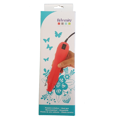 De Heat Gun van Artemio werkt op 220V en met een schakelaar kun je hem aan en uit zetten. Zet de Heat Gun alleen aan als je hem gebruikt en laat deze niet continu warmte blazen als je deze niet gebruikt. Houdt de Heat Gun niet te dicht op je werk want anders kan je werk te heet worden en vervormen. Laat de Heat Gun na gebruik afkoelen en berg deze dan eerst pas op.
