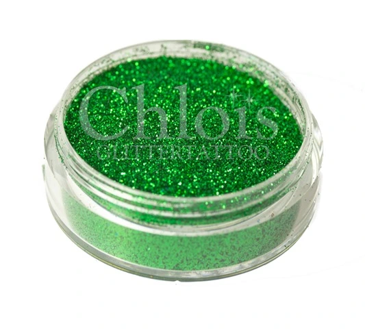 Chloïs Glitter Light Green 10 ml zijn zwarte schminkglitters voor het maken van glittertattoo’s, maar ook om te verwerken in een schmink ontwerp. bellypaint of bodypaint.