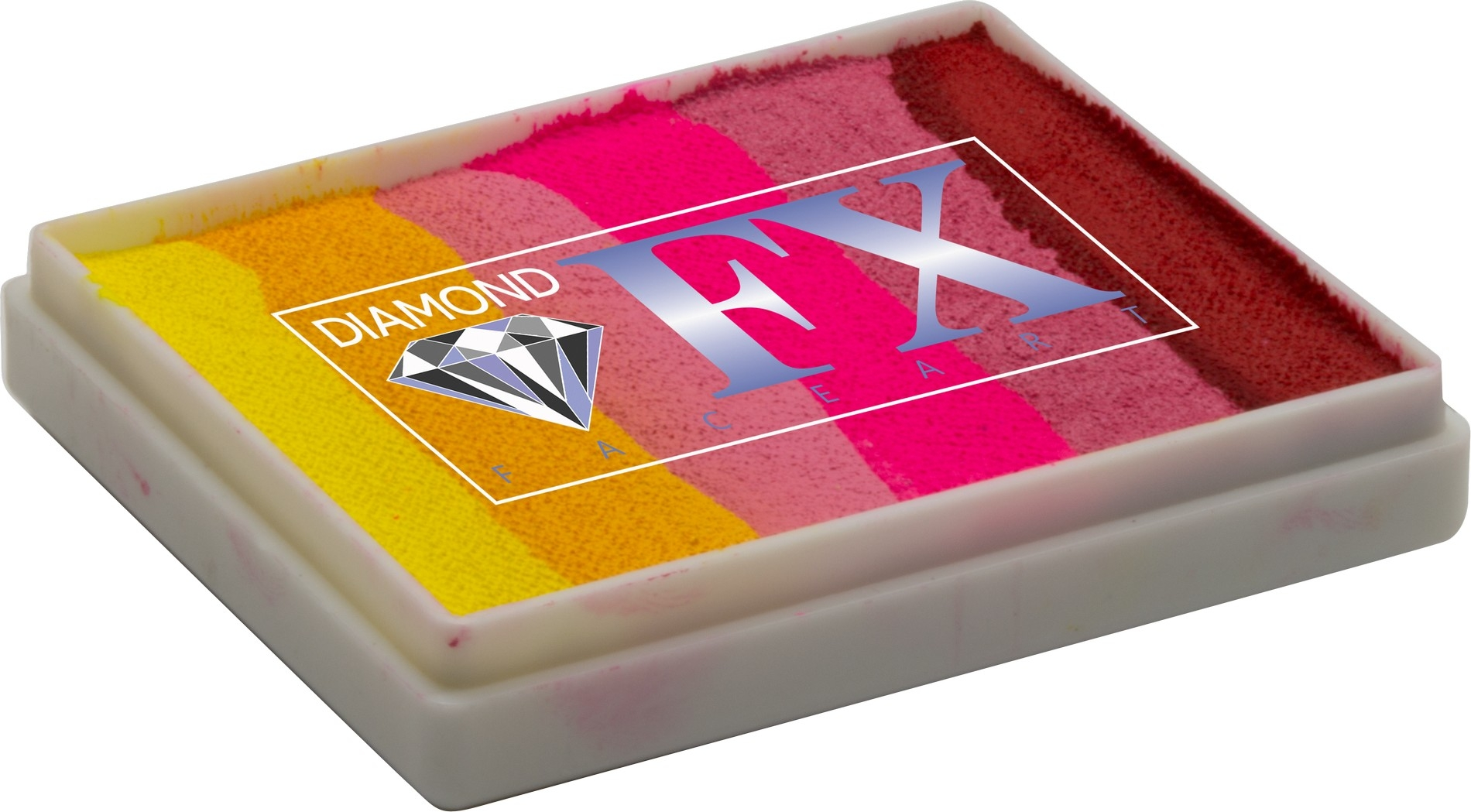 De Diamond FX Splitcake-collectie biedt prachtige kleurencombinaties in één doosje. Met deze one stroke schmink verpakkingen maak je snel de mooiste ontwerpen. Of je nu een vlinder, prinses of draak wil schminken. Met de splitcakes is het zo gedaan. Ook het schminken van rozen, bloemetjes en bloembladeren is een fluitje van een cent.