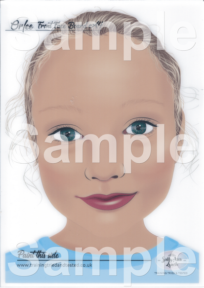 Wanneer je wil oefenen met schminken is het makkelijk wanneer je hiervoor een oefenhoofd of deze schmink oefenborden in huis hebt. Gewoon omdat niet altijd iemand model voor je kan zitten en veel oefenen belangrijk is om steeds beter te worden in het schminken. Deze Oefenborden zijn gemaakt door Sally-Ann Lynch. Een gerespecteerd schminker en docent. Op dit oefenbord staat een gezicht van een vrouw, het bord is 21 x 29,7 cm groot (A4)Â