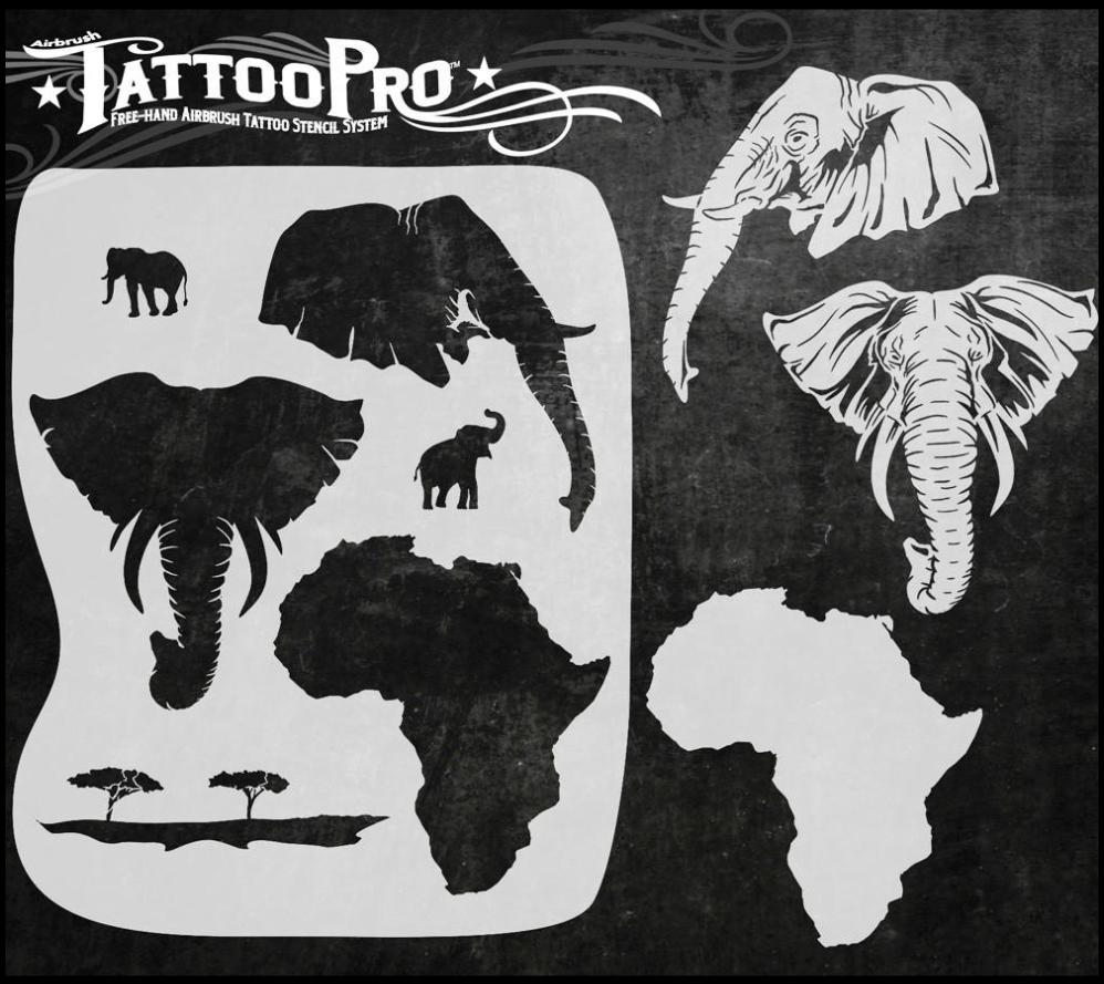 Wiser’s Airbrush TattooPro Stencil – African Elephant zijn Airbrush sjablonen speciaal ontworpen door Bodypaint en Graffiti artist Wiser Oner.