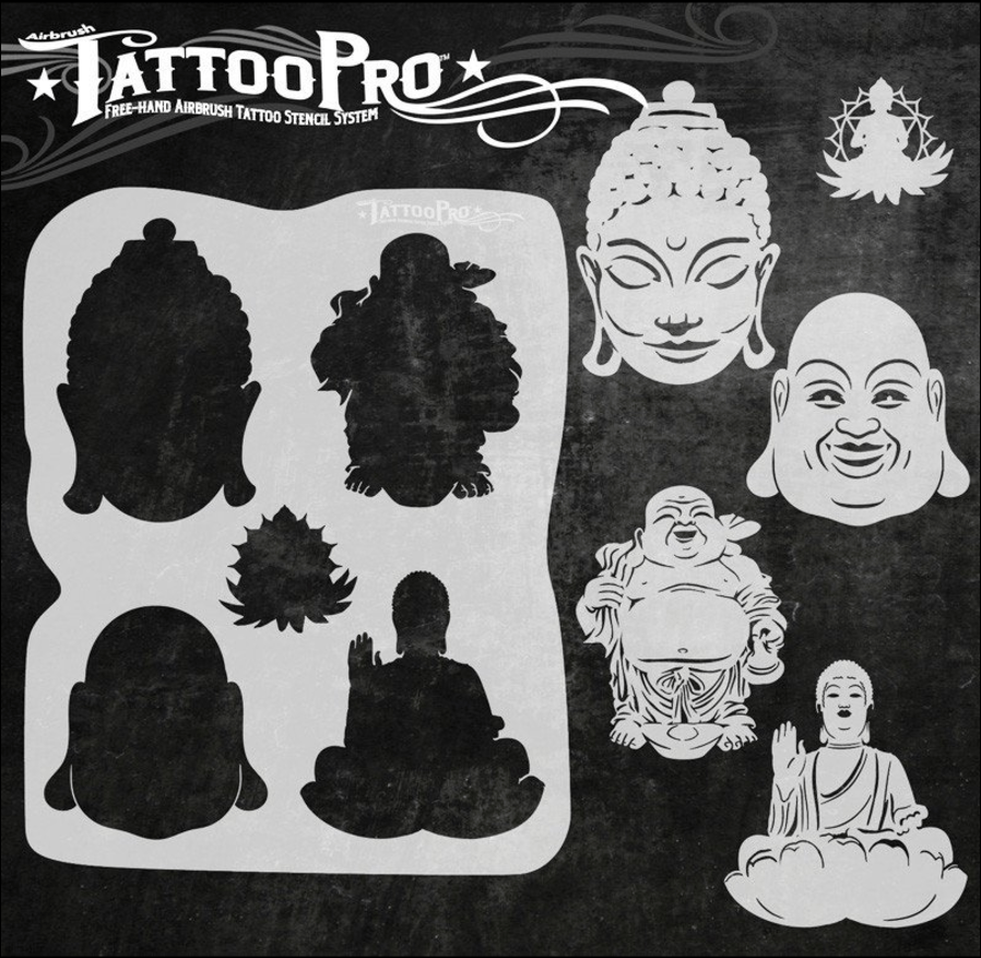 Wiser’s Airbrush TattooPro Stencil – Buddhas zijn Airbrush sjablonen speciaal ontworpen door Bodypaint en Graffiti artist Wiser Oner.