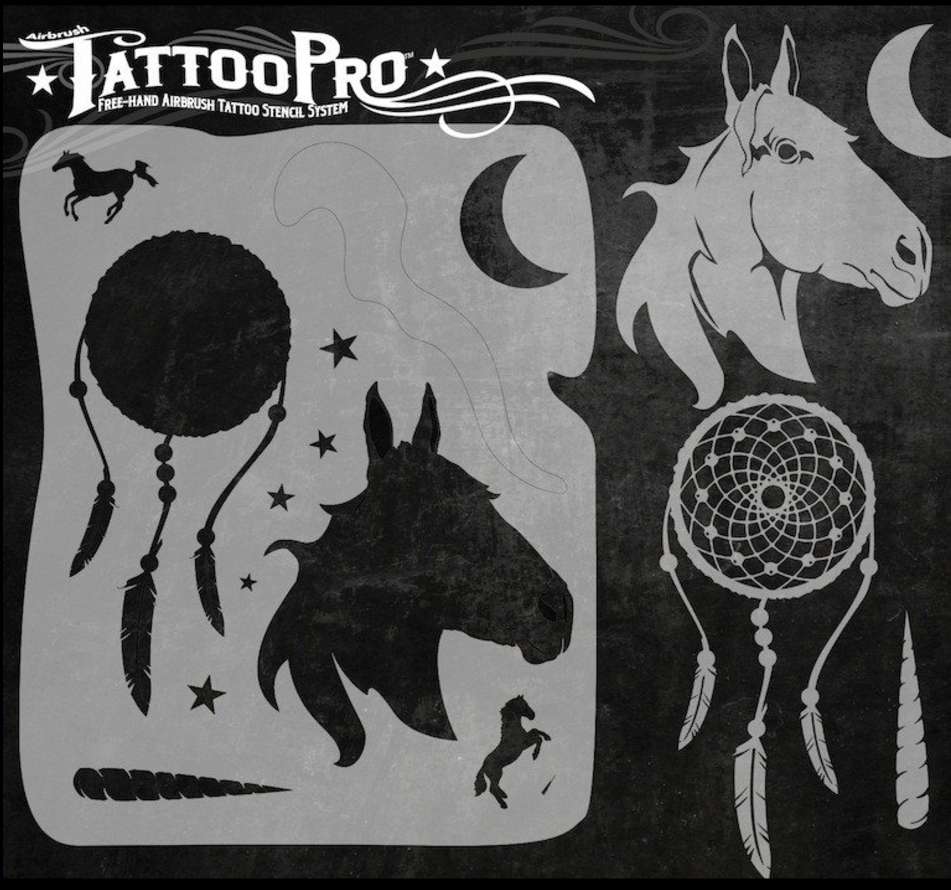 Wiser’s Airbrush TattooPro Stencil – Dream Horse zijn Airbrush sjablonen speciaal ontworpen door Bodypaint en Graffiti artist Wiser Oner.