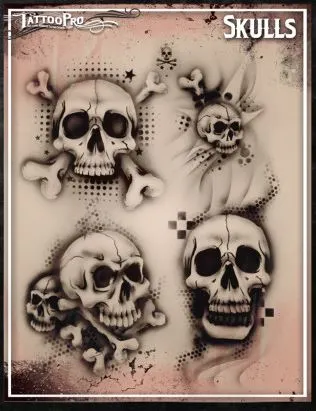 Wiser’s Airbrush TattooPro Stencil – Skulls zijn Airbrush sjablonen speciaal ontworpen door Bodypaint en Graffiti artist Wiser Oner.